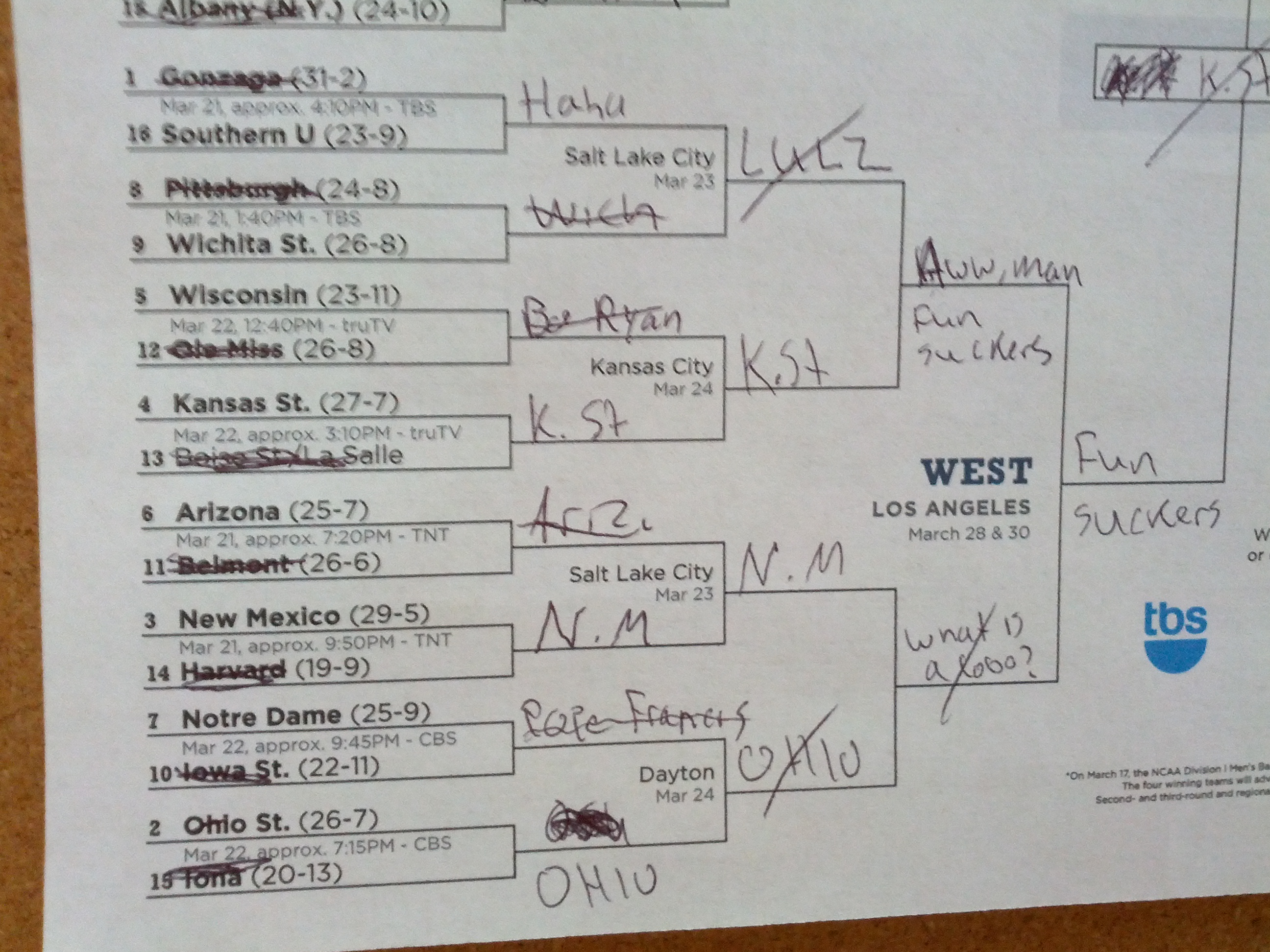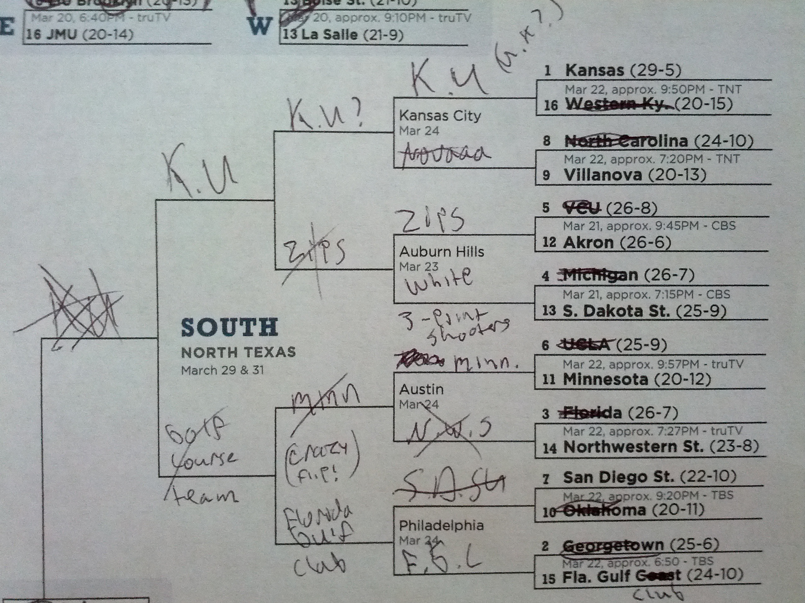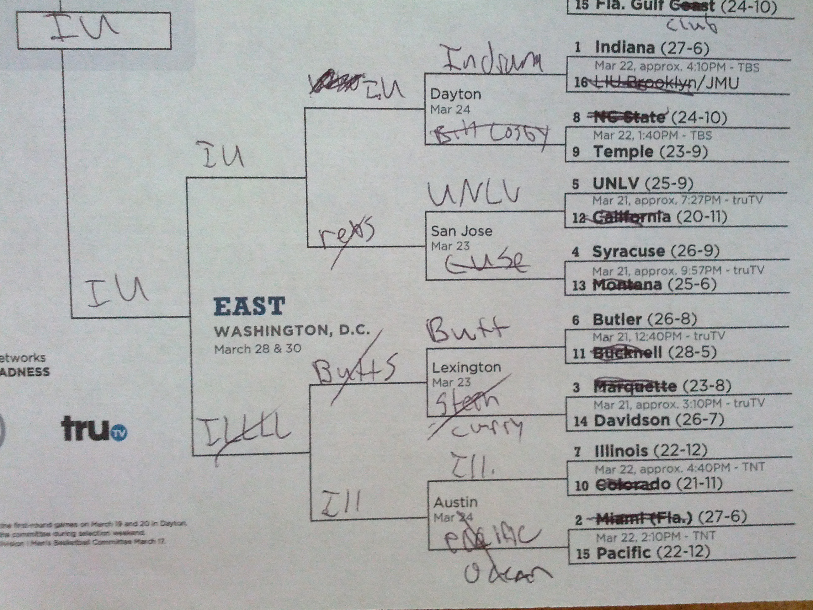 Sometimes I worry that I may have peaked in my bracket-predicting ability too young. I correctly picked the NCAA Champion 6 years in a row in a stretch from the 2001-2002 season (shout out to Steve Blake and Juan Dixon for starting the streak with the Terps) to the 2006-2007 season (How could you pick against Al Horford and Joakim Noah after winning the year before?). Starting in 2008, Kevin Love, Russell Westbrook, and UCLA let me down by falling to Memphis in the Final Four. That left a sour taste in my mouth, but not as sour as watching the star-studded Pittsburgh team I picked to win it all in 2009 (Levance Fields, DeJuan Blair, and Sam Young) fall in the Elite 8 after letting Scottie Reynolds of Nova drive coast to coast with 5 seconds left to win the game with a layup. I didn’t think it could get any worse…and that, of course, is when it gets worse. With the ballsiest three-point attempt of the decade, Ali Farokhmanesh of Northern Iowa sealed the fate of my National Championship pick Kansas in the Round of 32 in 2010; for the third straight year, things had gotten progressively worse.